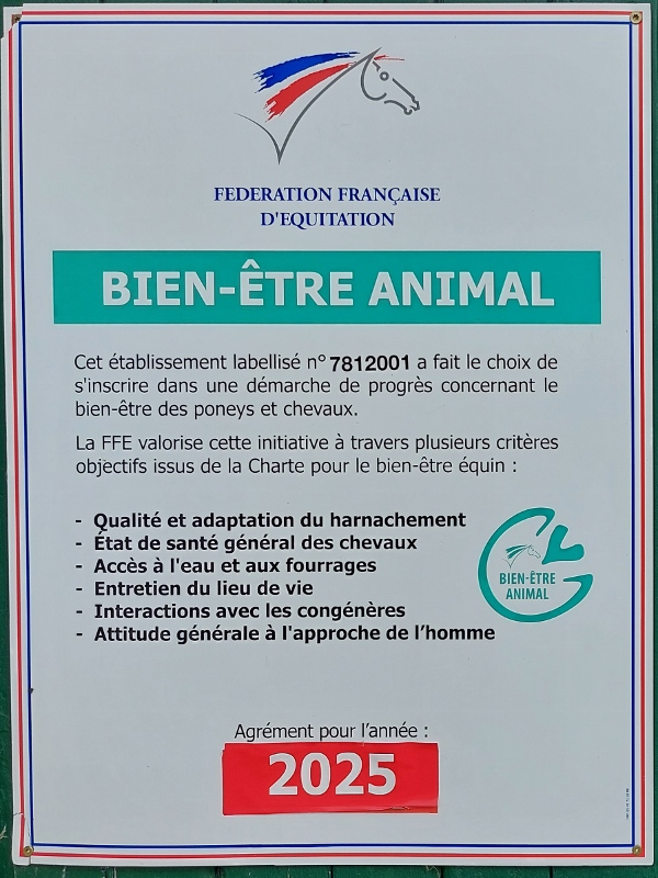 Le Centre Équestre Poney Club de Rambouillet a reçu le label d' "Écoles Française d'Équitation", Poney Club de France et Cheval Club de France, ainsi que le label du "Bien-être Animal"